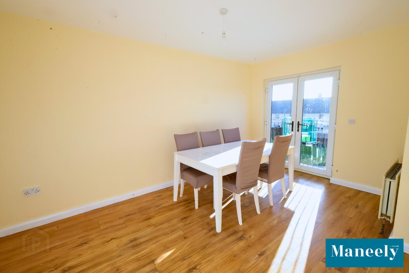 Well-proportioned dining area finished with laminate flooring. Power points.