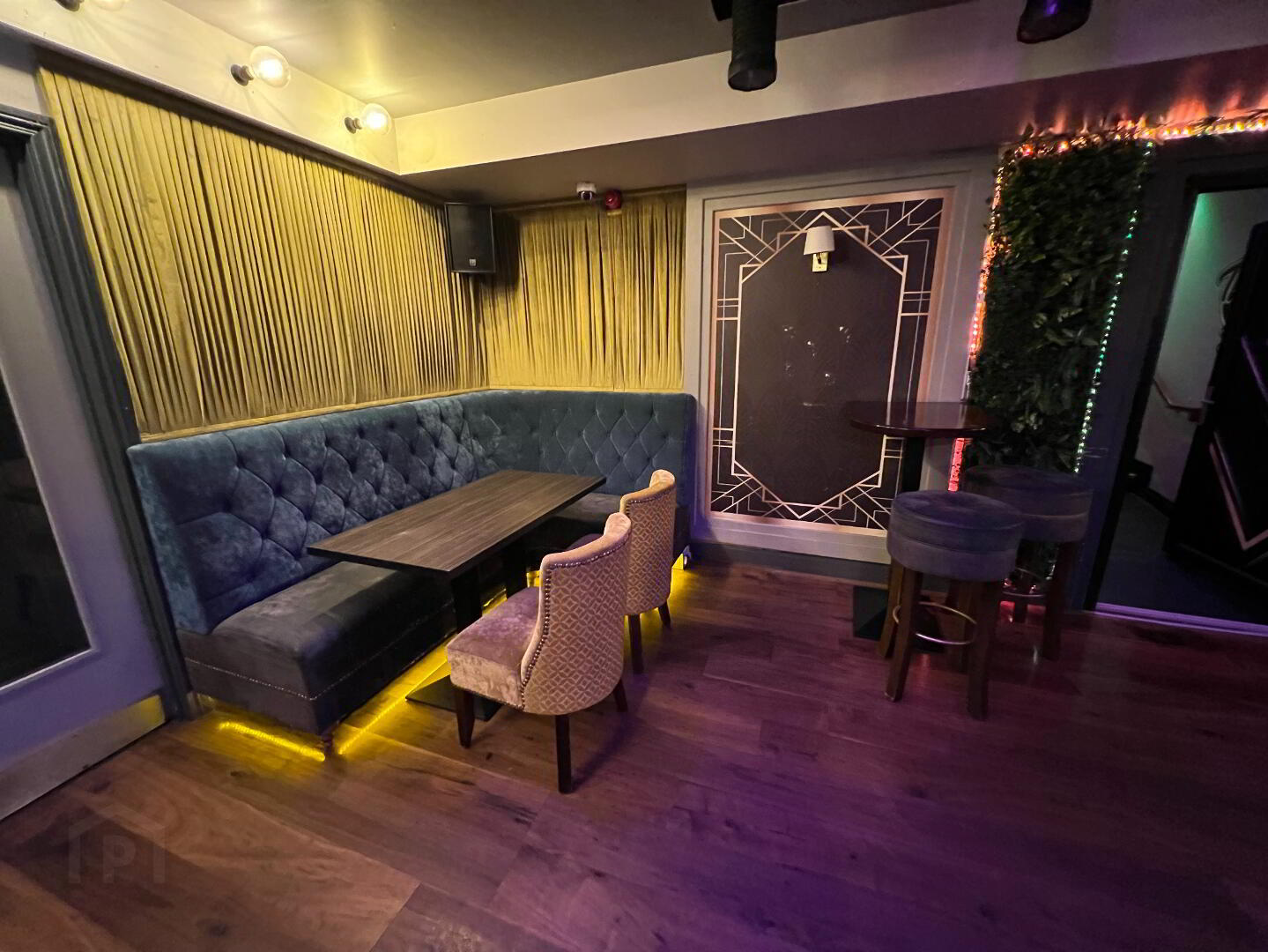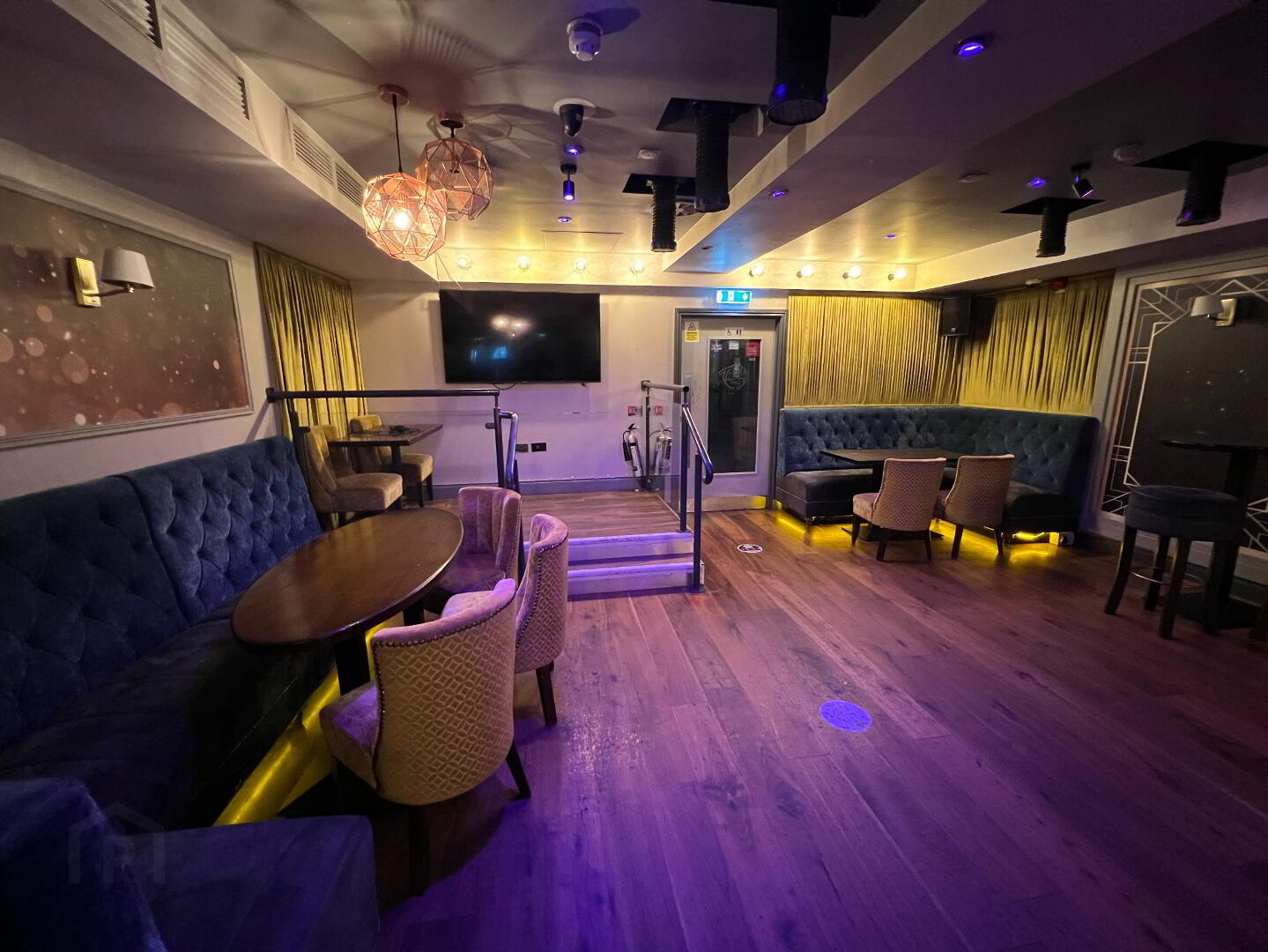 - Performance stage with disco lighting