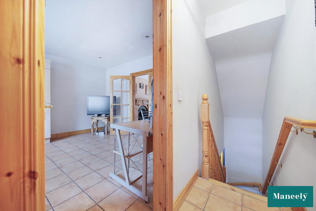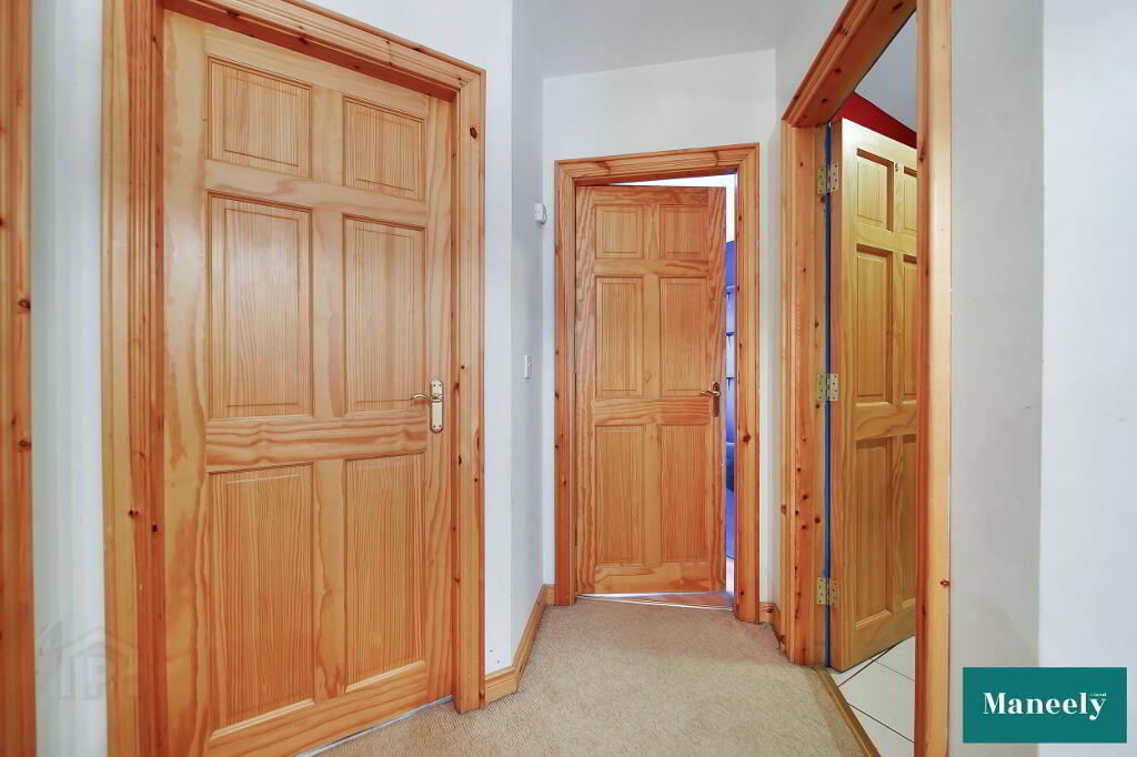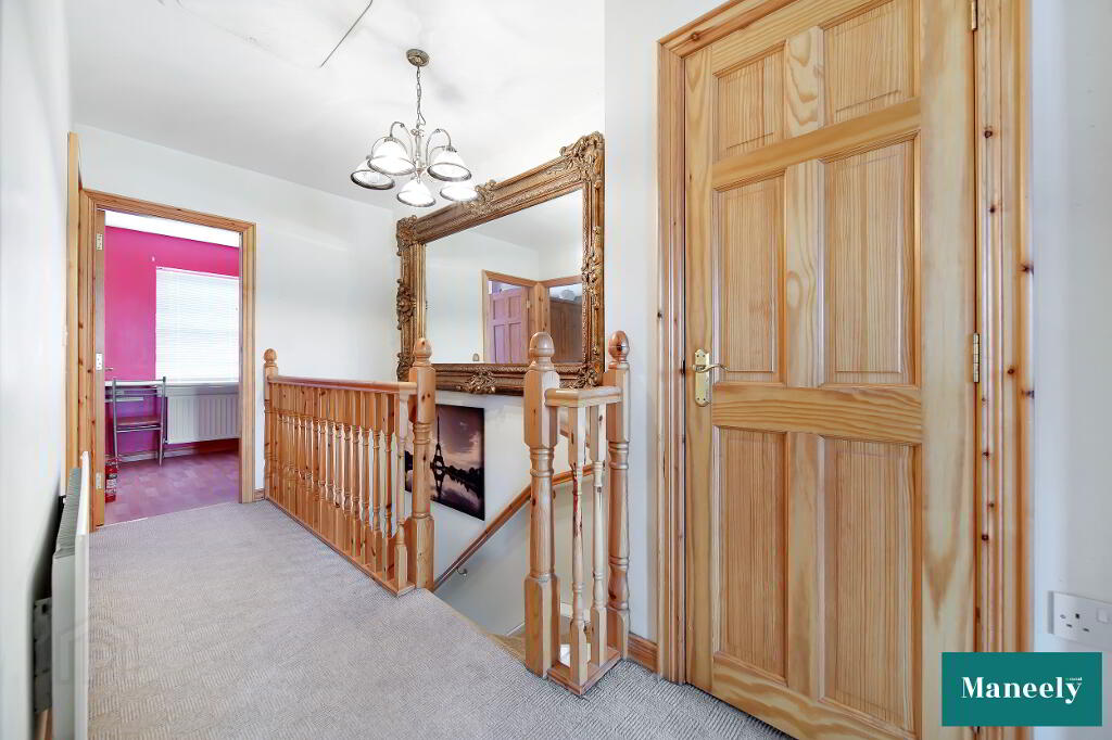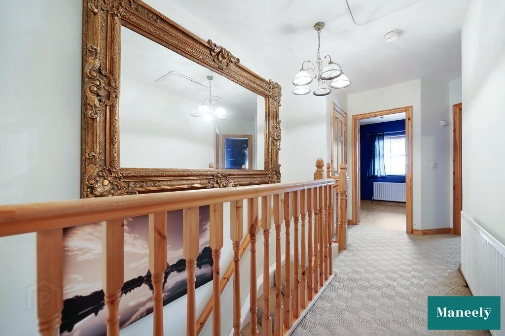 Carpeted landing with access to shelved hot press and all bedrooms. Power Points.