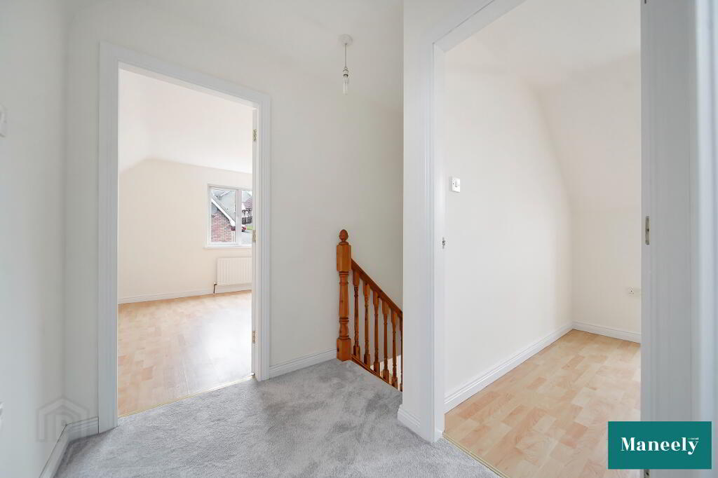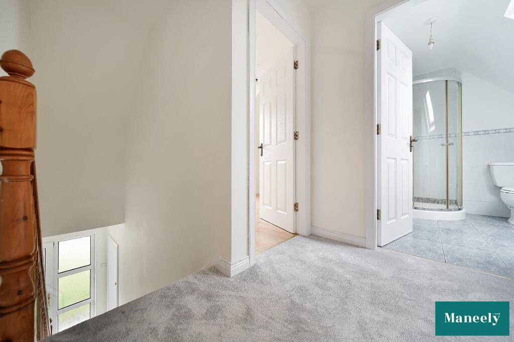 Carpeted landing area providing access to all first-floor rooms. Shelved hot press off.