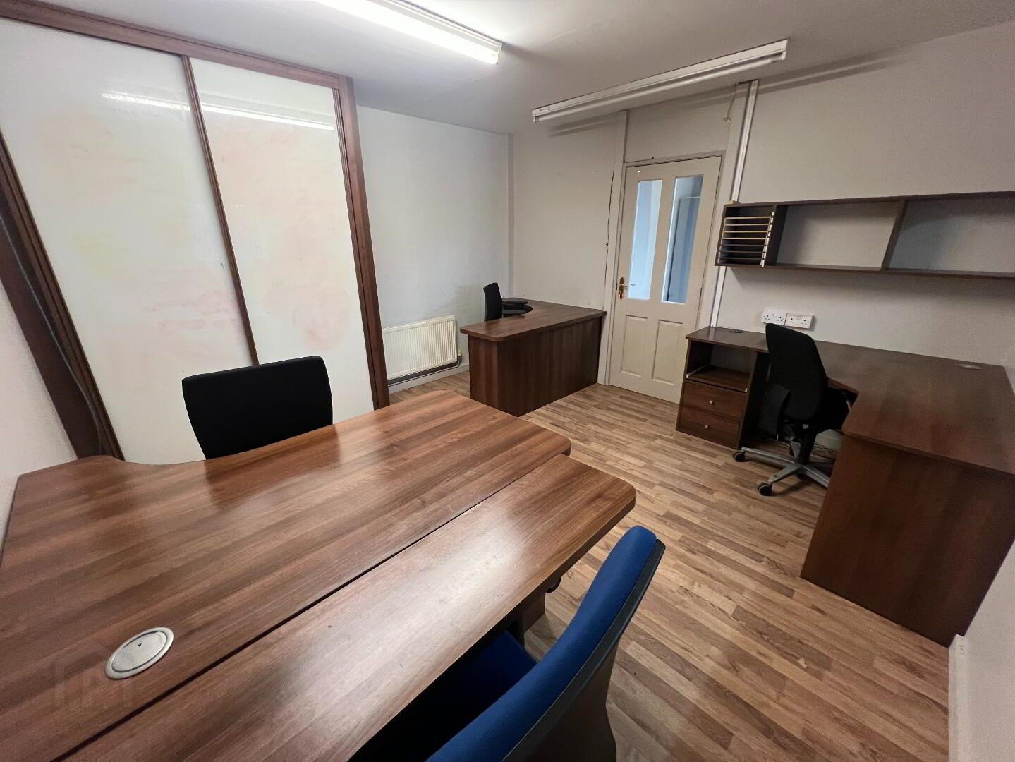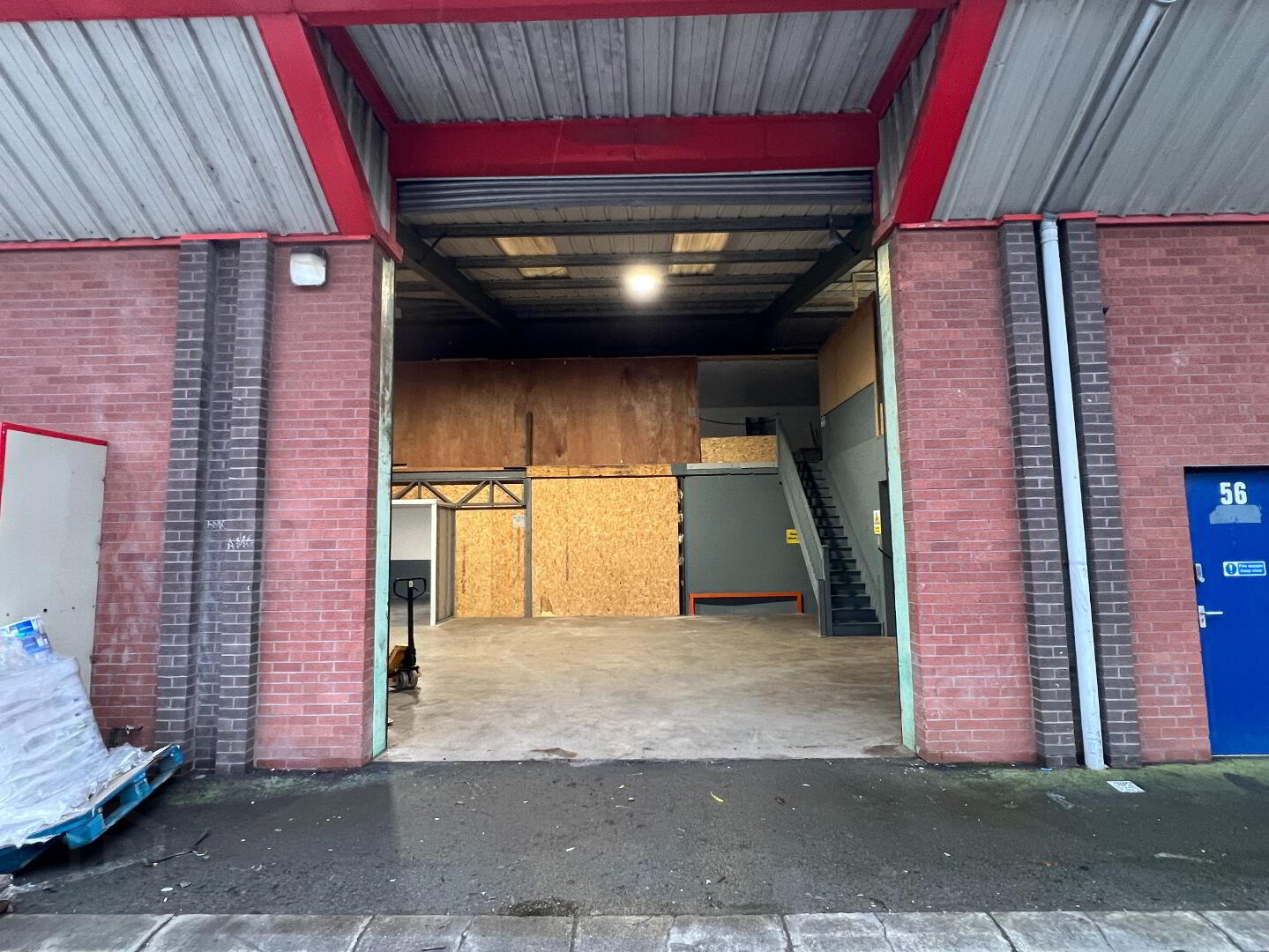 The accommodation comprises an entrance foyer, two contemporary offices, separate male and female WCs, and a generous warehouse area. In addition, there is 2,727 sq ft of first-floor mezzanine space—consisting of offices and storage rooms—installed by a previous tenant. If the incoming tenant wishes to retain this additional space, along with the existing office furniture (built-in desks, cupboards, etc.) and space heater, these can remain in place at cost price. Alternatively, the mezzanine and furnishings can be removed as required. Please note that the mezzanine area is not included within the total 4,250 sq ft ground-floor measurement; however, if retained, no additional rent will be charged for this 2,727 sq ft first-floor space.